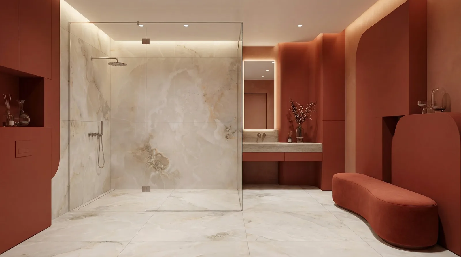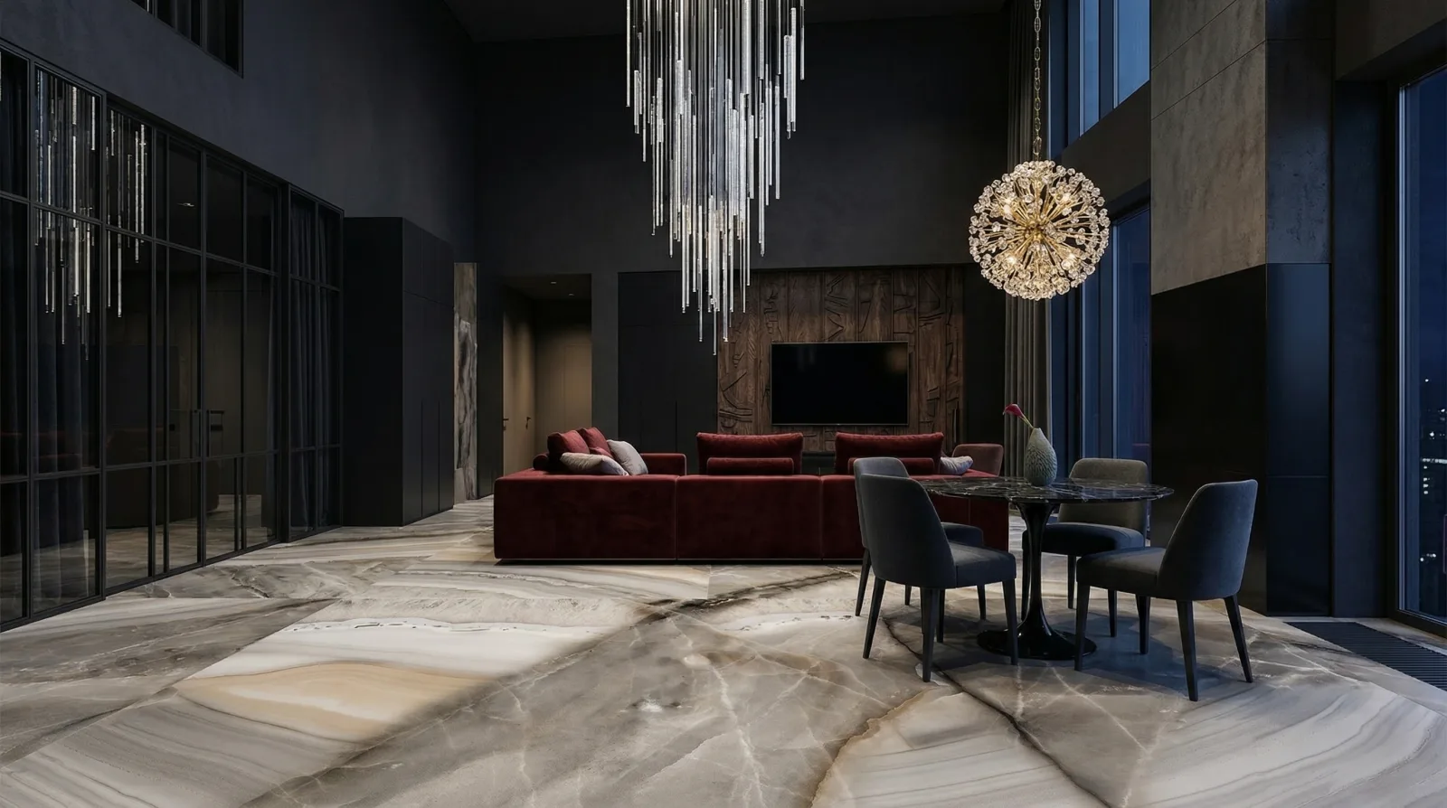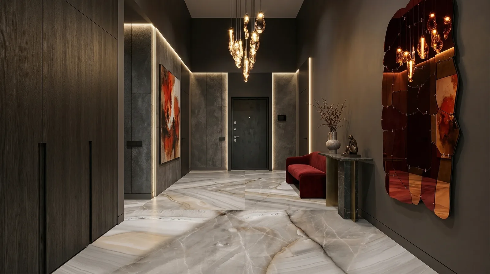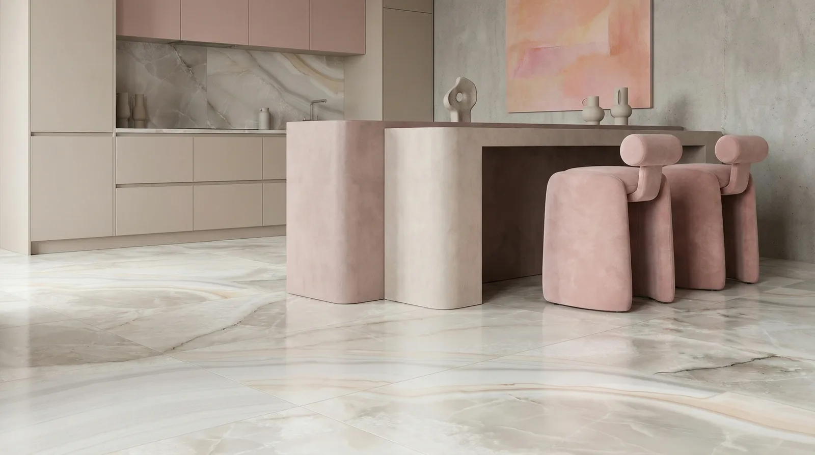 Полупрозрачные текстуры оникса с глубокими цветовыми переходами. Эффектные решения для акцентных зон.