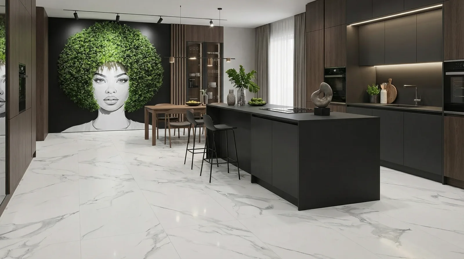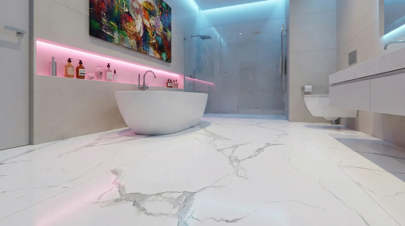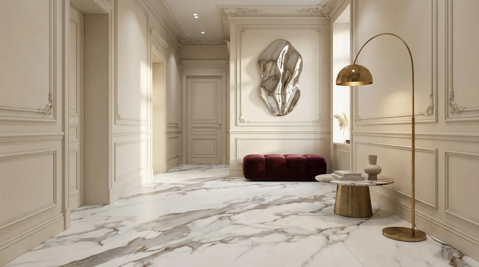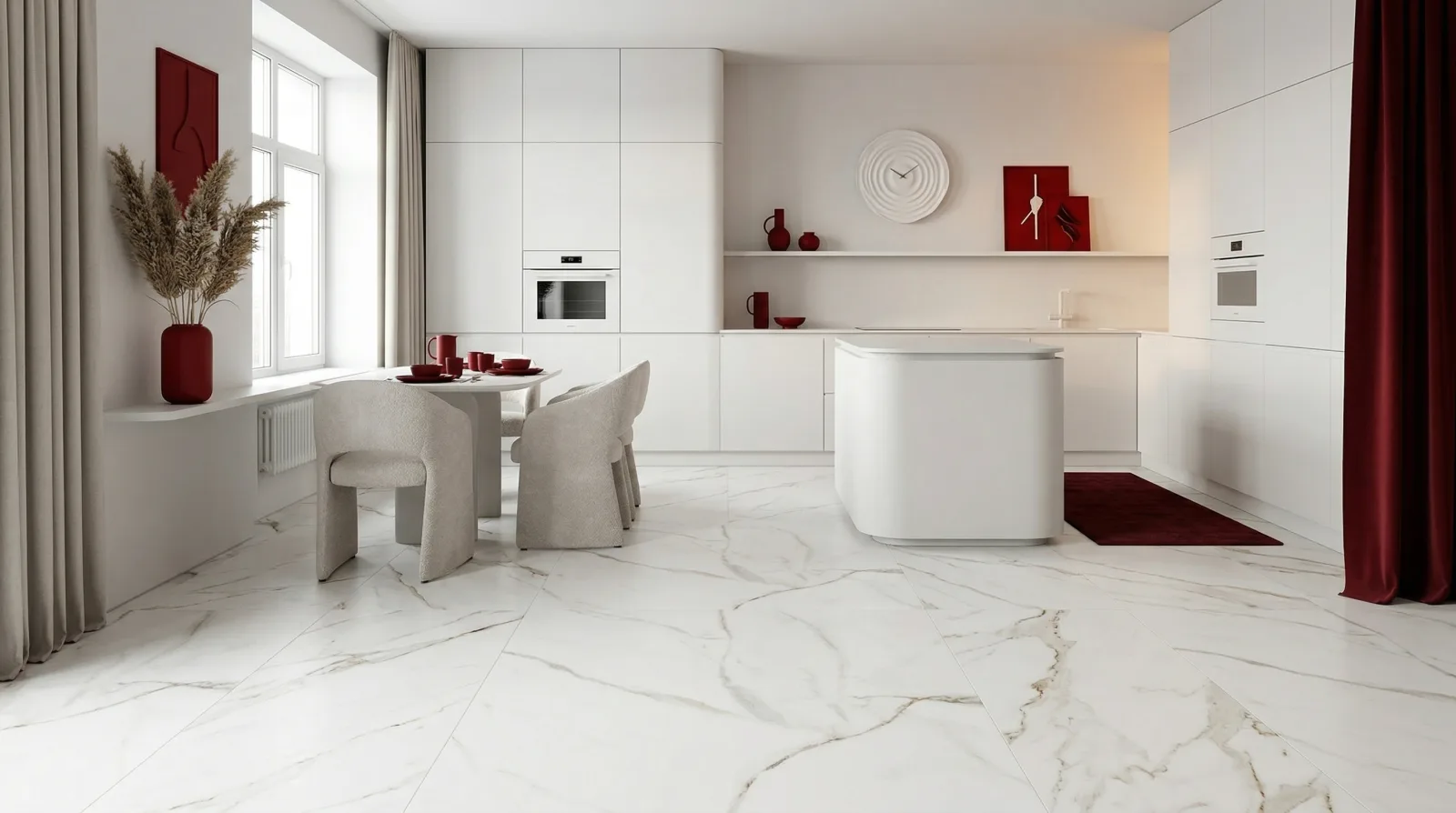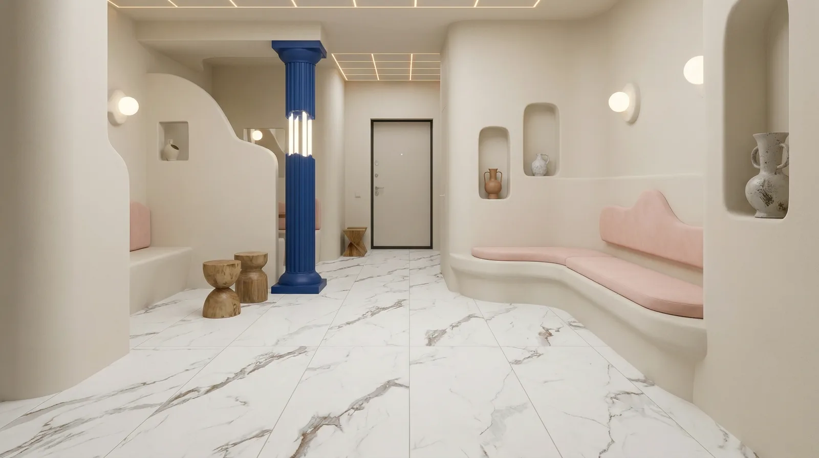 Роскошные имитации Calacatta, Statuario и других благородных мраморов. Белые и светло-серые оттенки для утончённых интерьеров.