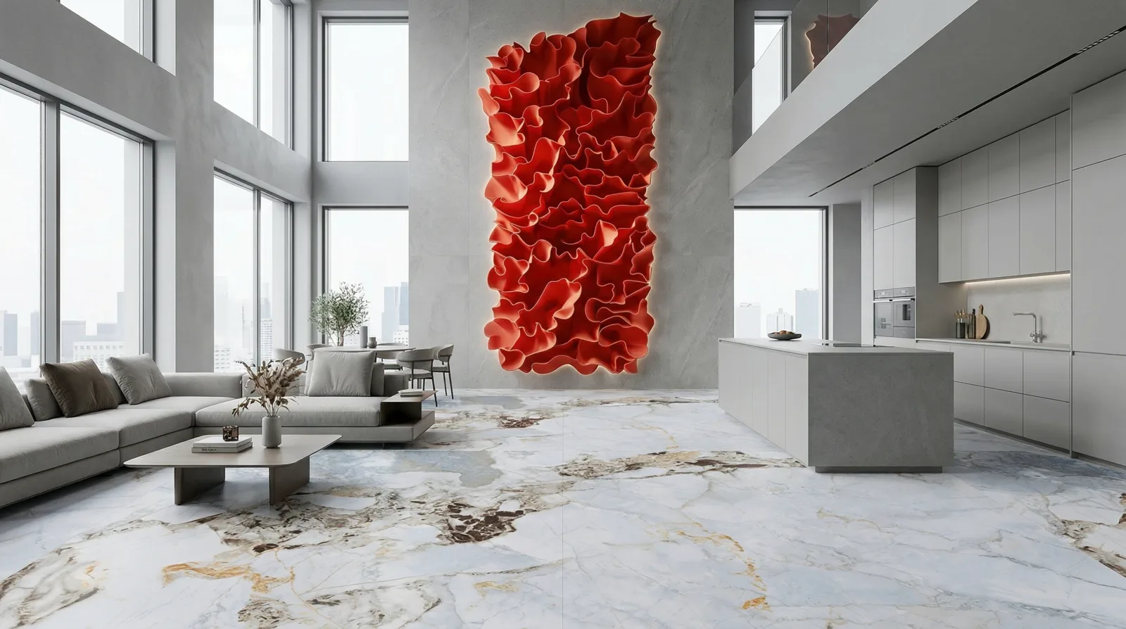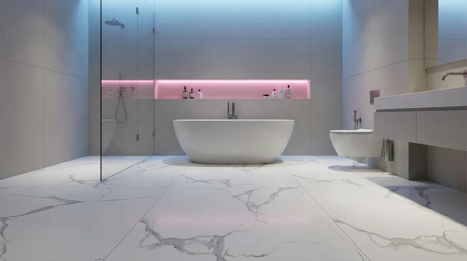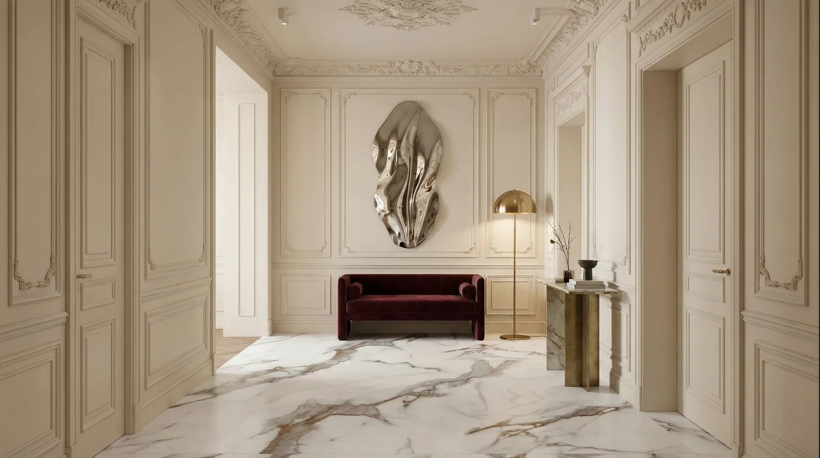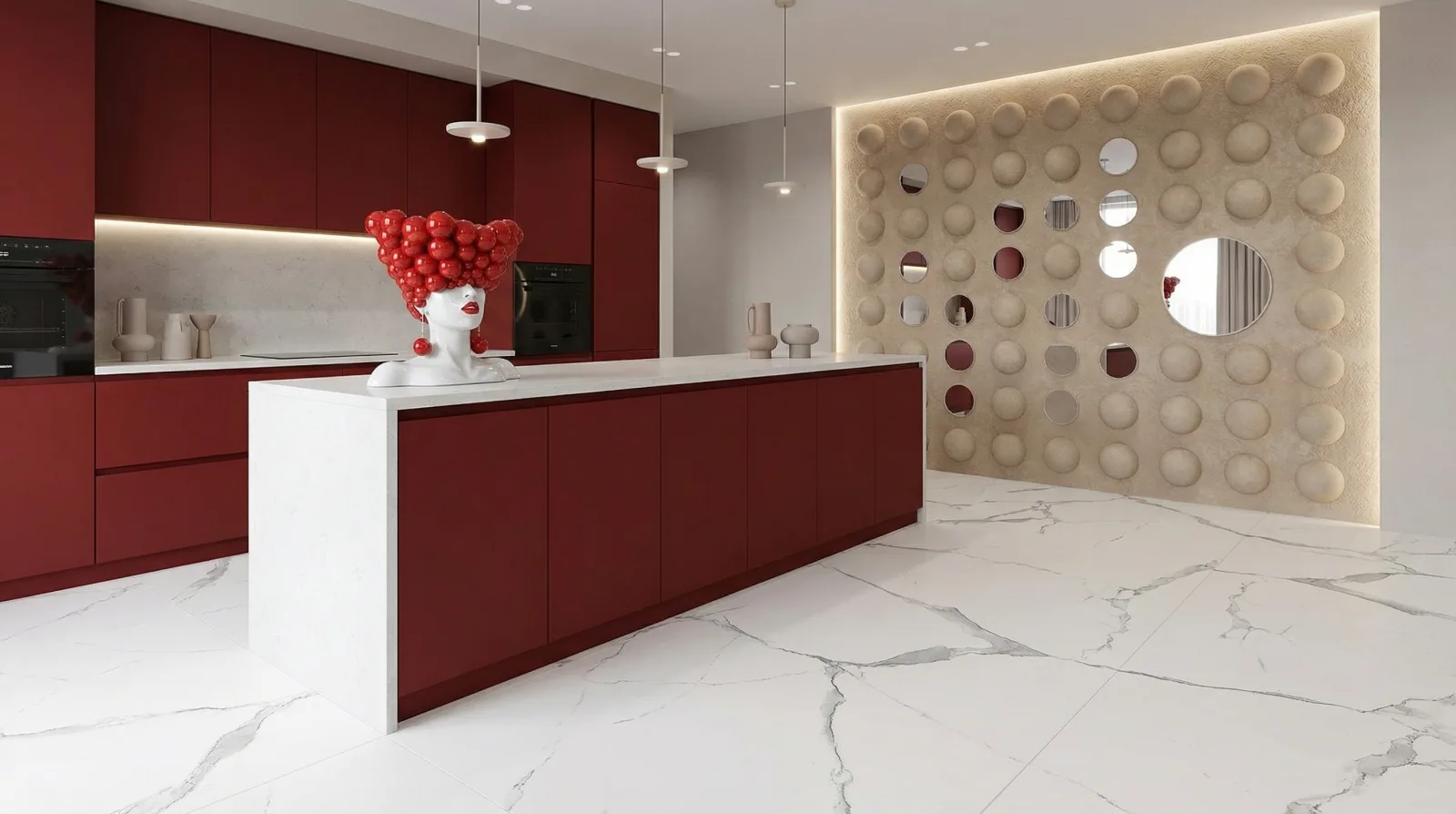 Роскошные имитации Calacatta, Statuario и других благородных мраморов. Белые и светло-серые оттенки для утончённых интерьеров.