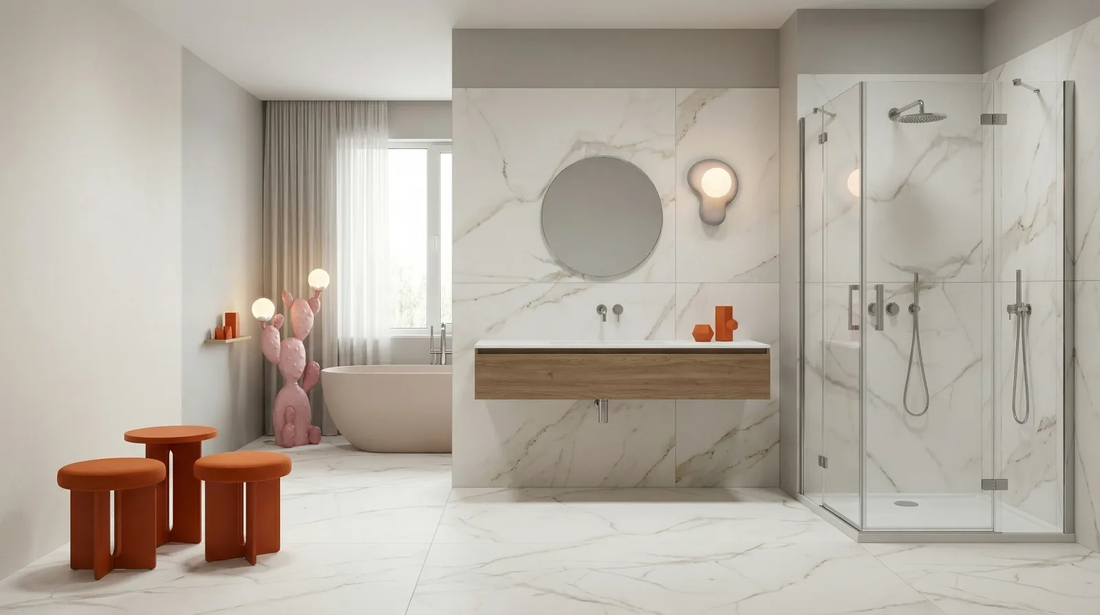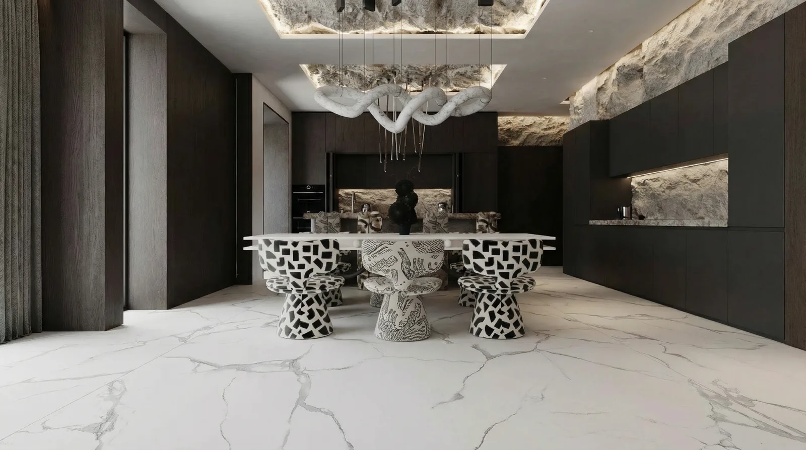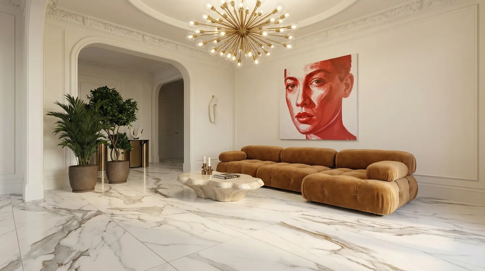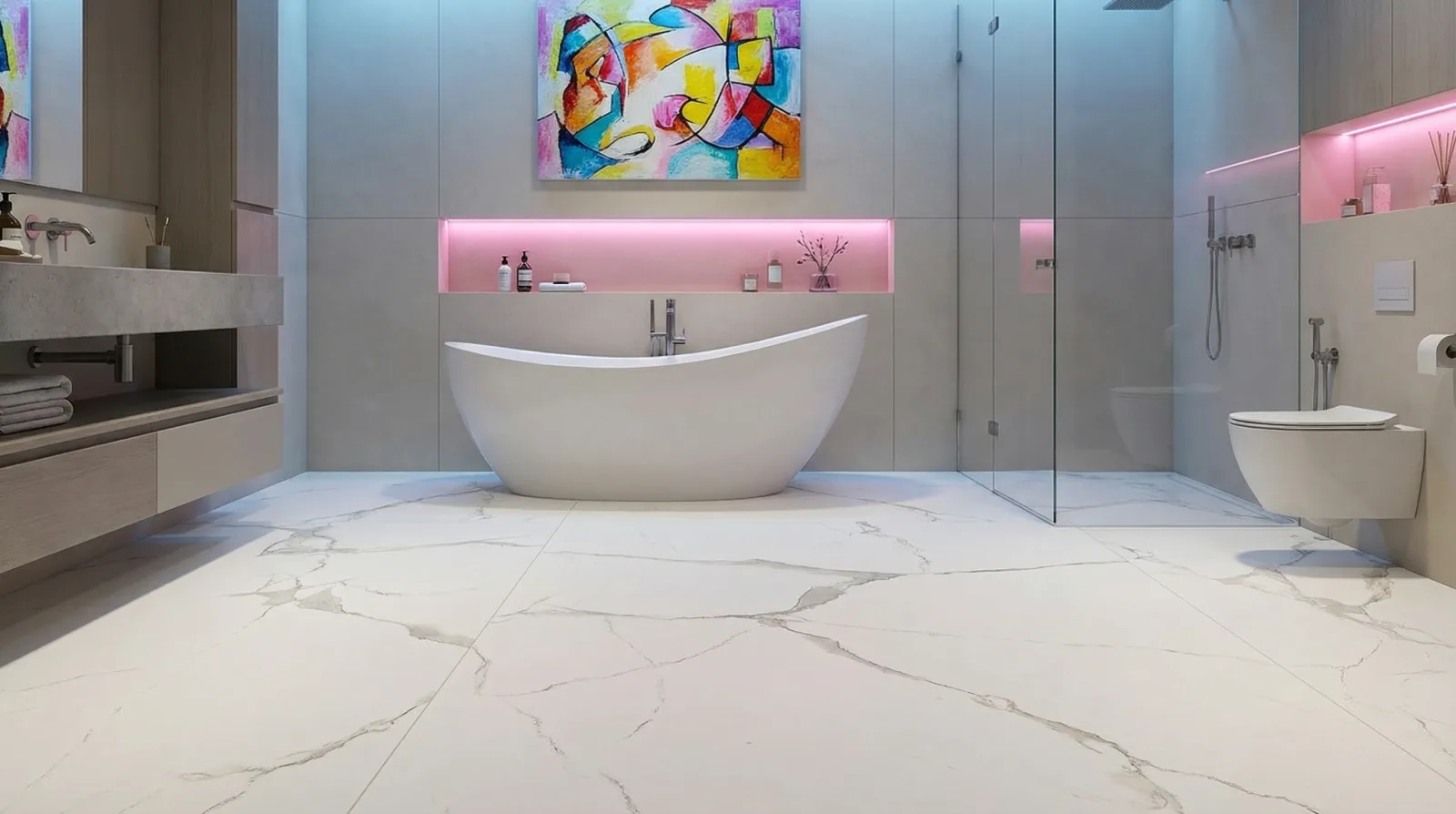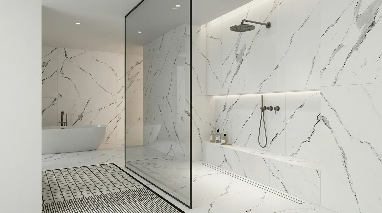 Роскошные имитации Calacatta, Statuario и других благородных мраморов. Белые и светло-серые оттенки для утончённых интерьеров.